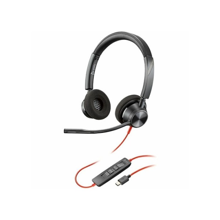 Auriculares estéreo USB-C HP Poly Blackwire 3320 + adaptador USB-C/A - Estéreo - USB tipo C, miniteléfono (3,5 mm) - Con cable - 32 ohmios - 20 Hz a 20 kHz - Supraaural, binaural - Supraaural - Cable de 7,10 pies - Micrófono omnidireccional con cancelació
